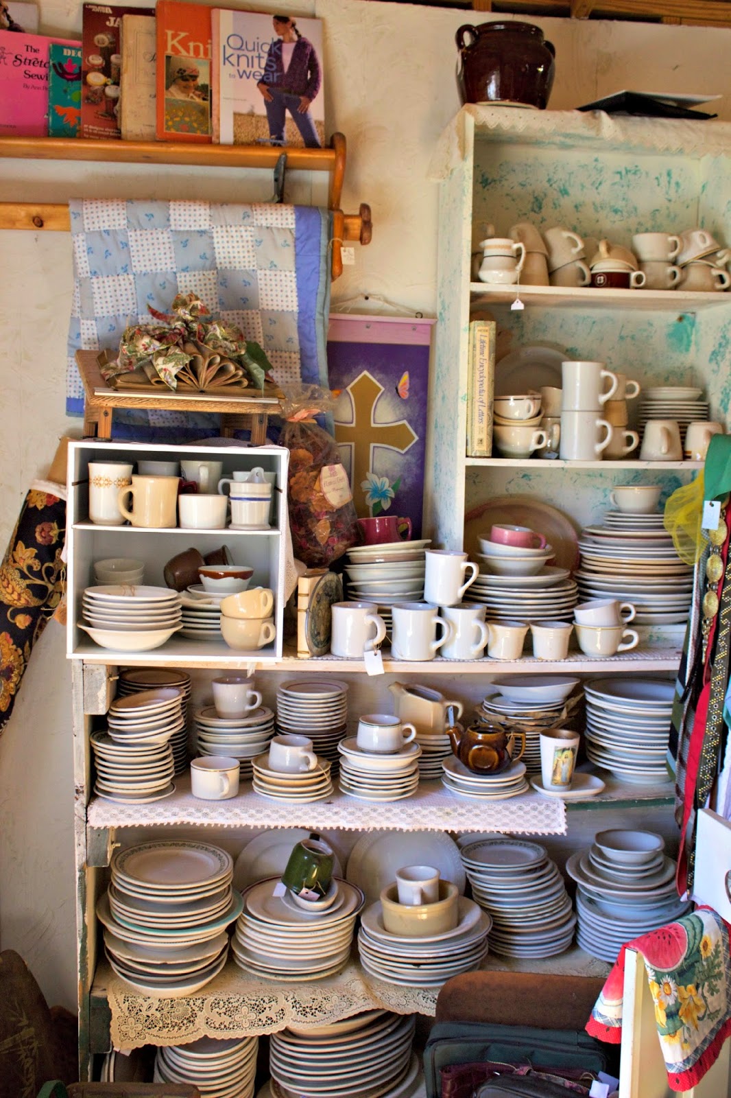 The little woman that owned the buildings had an insane amount of cups, plates, and teapots.